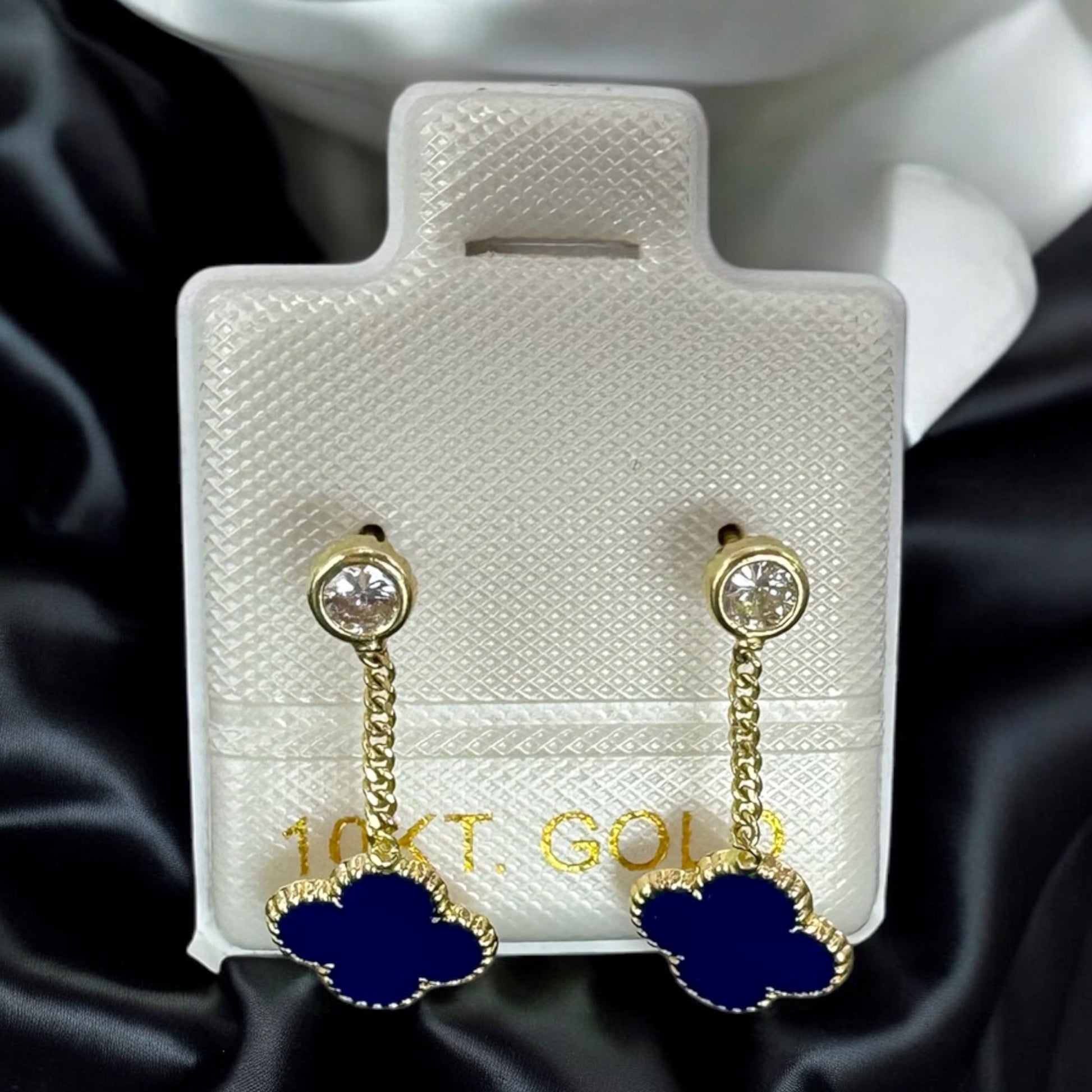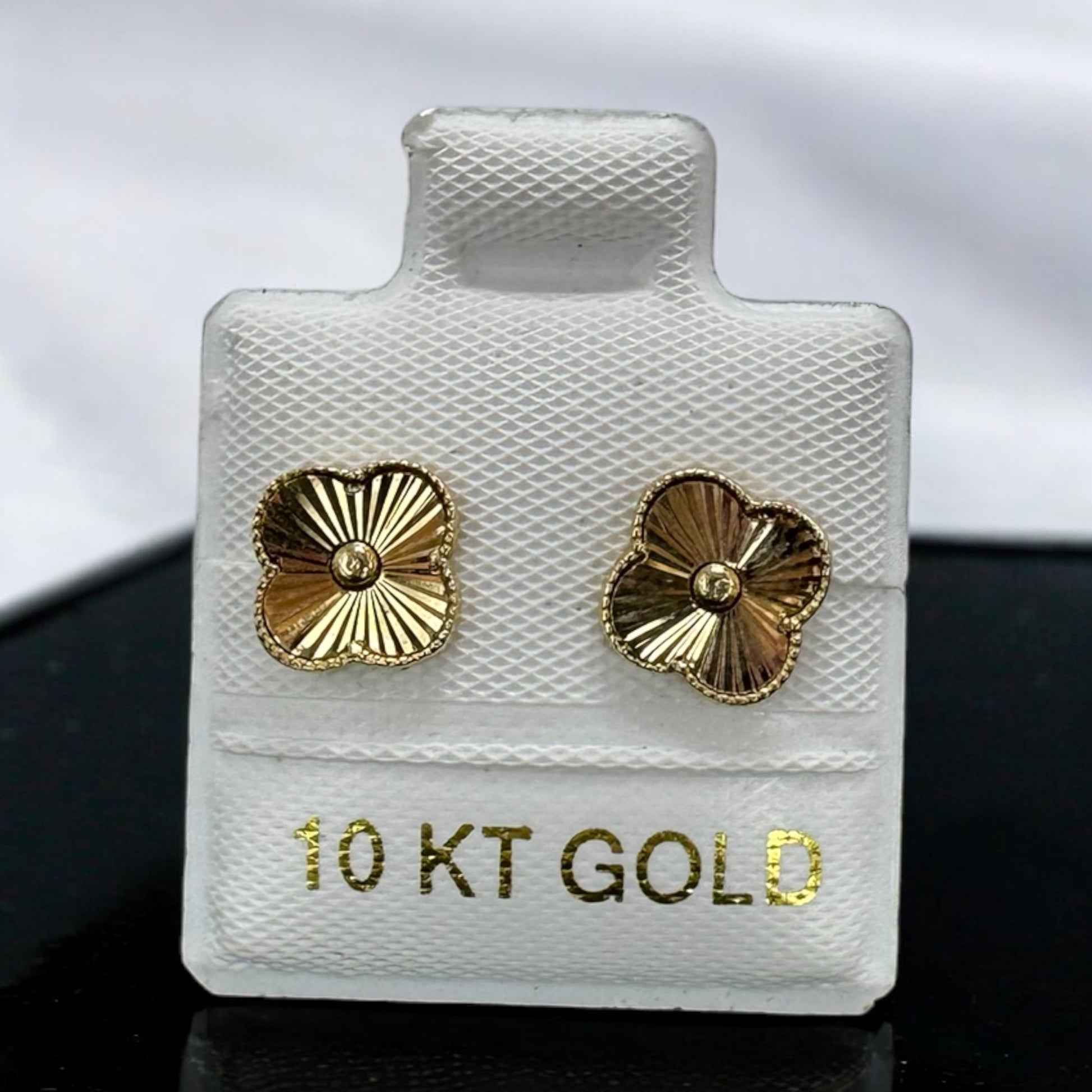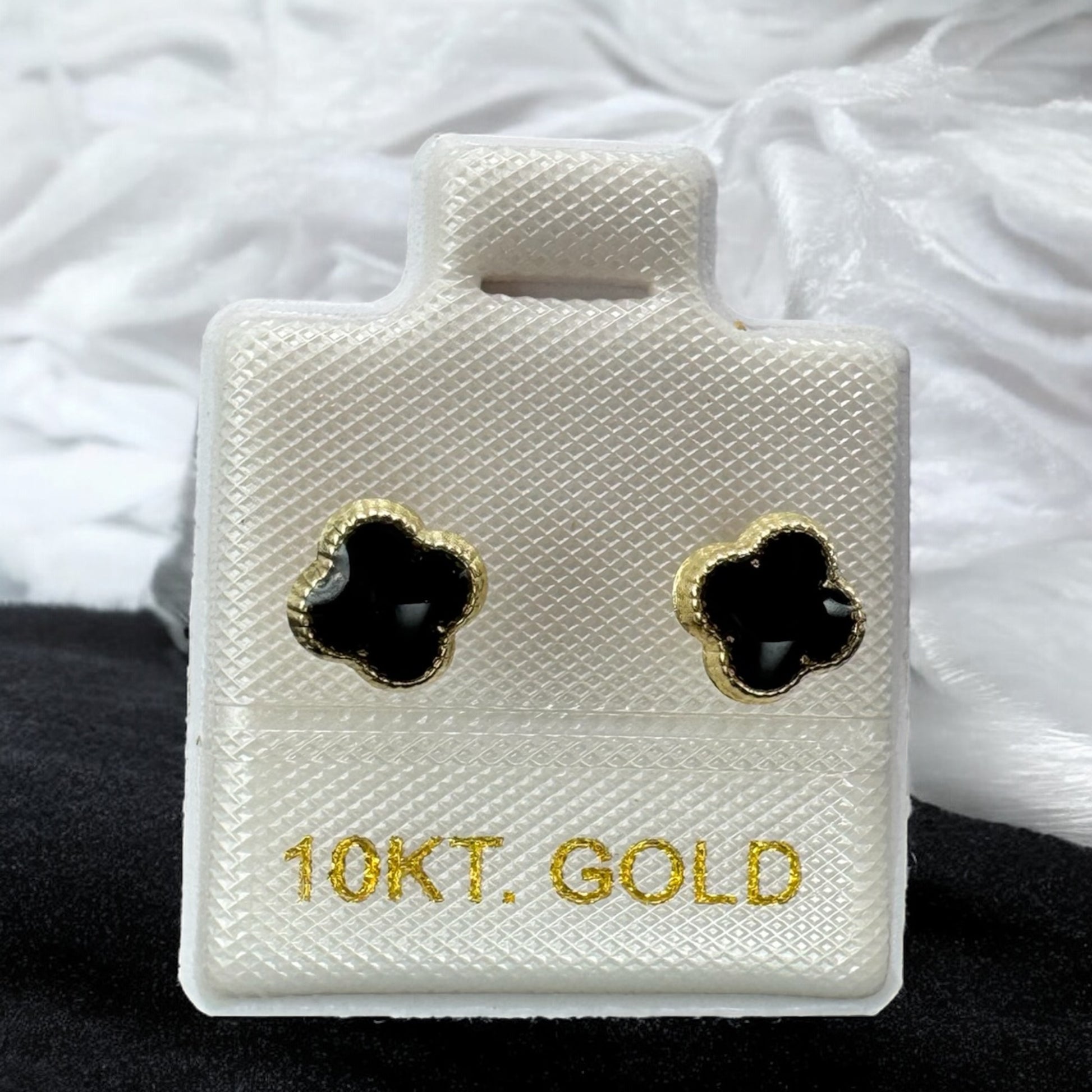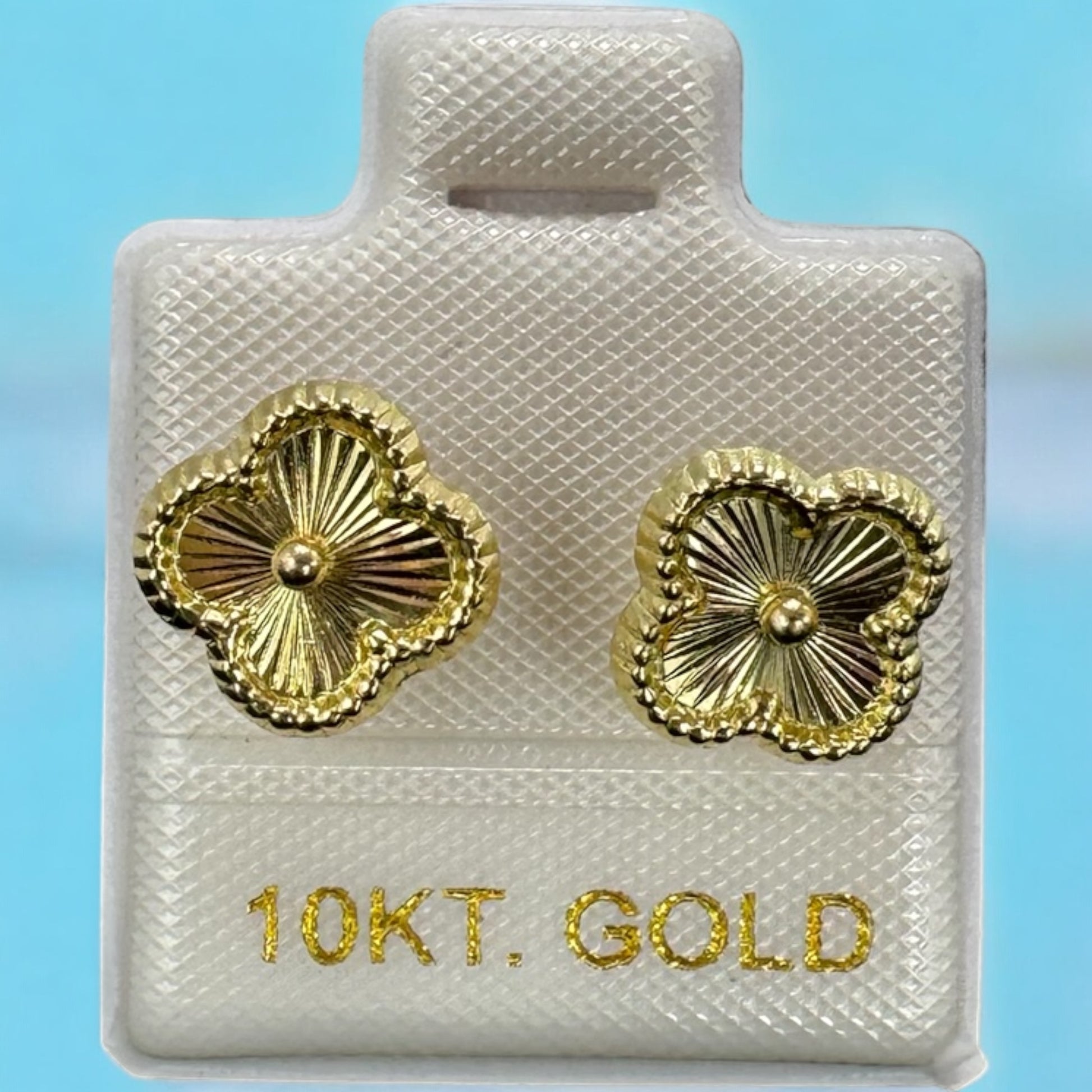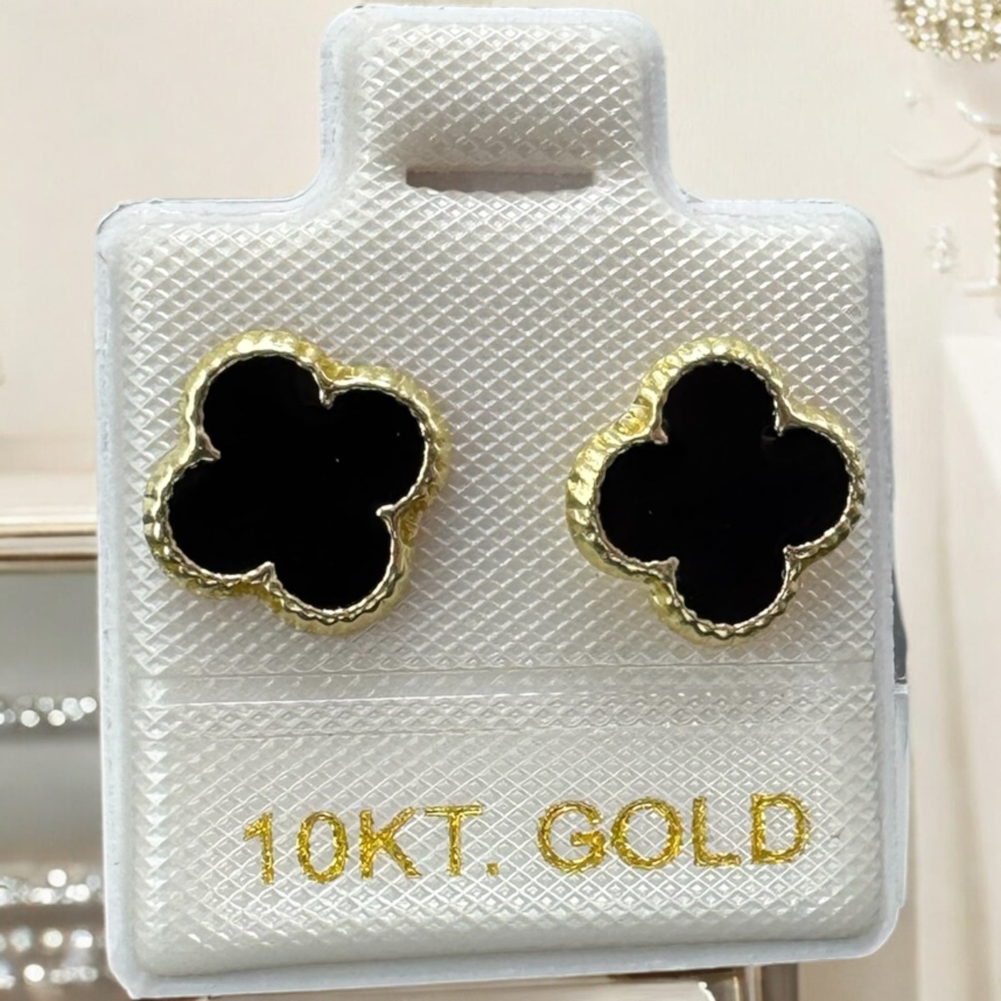 Descubre la exquisitez de nuestros broqueles trébol en oro de 10K, disponibles en diferentes colores y tamaños.