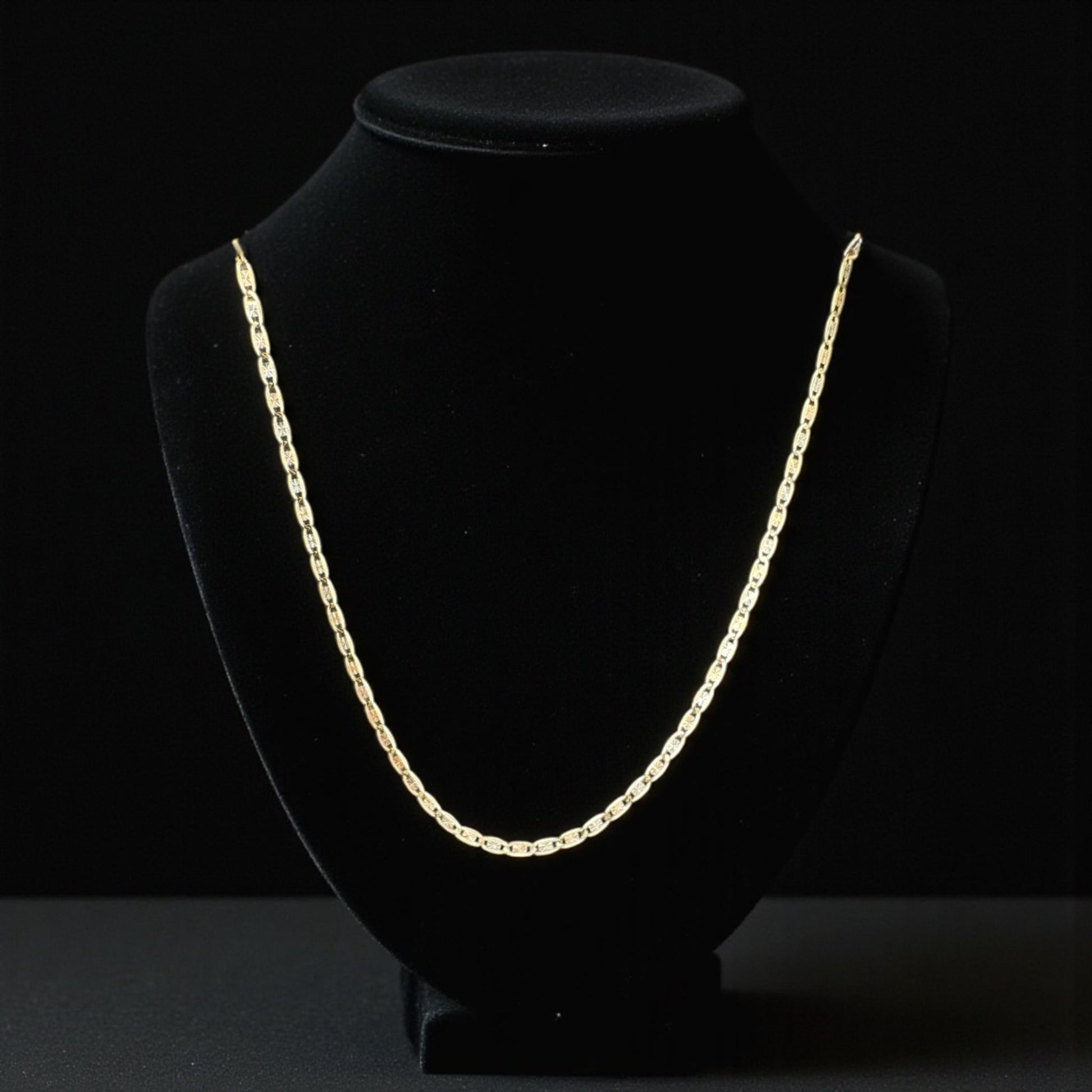 Destaca con esta elegante cadena diseño espejo en oro mexicano 10K, que combina resistencia y brillo duradero.