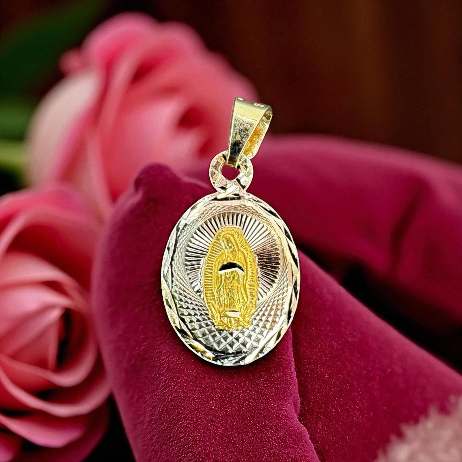 Estos escapularios de la Virgen y Jesús están elaborados en oro mexicano de 10 quilates, ofreciendo un diseño clásico y duradero que refleja tradición y fe.
