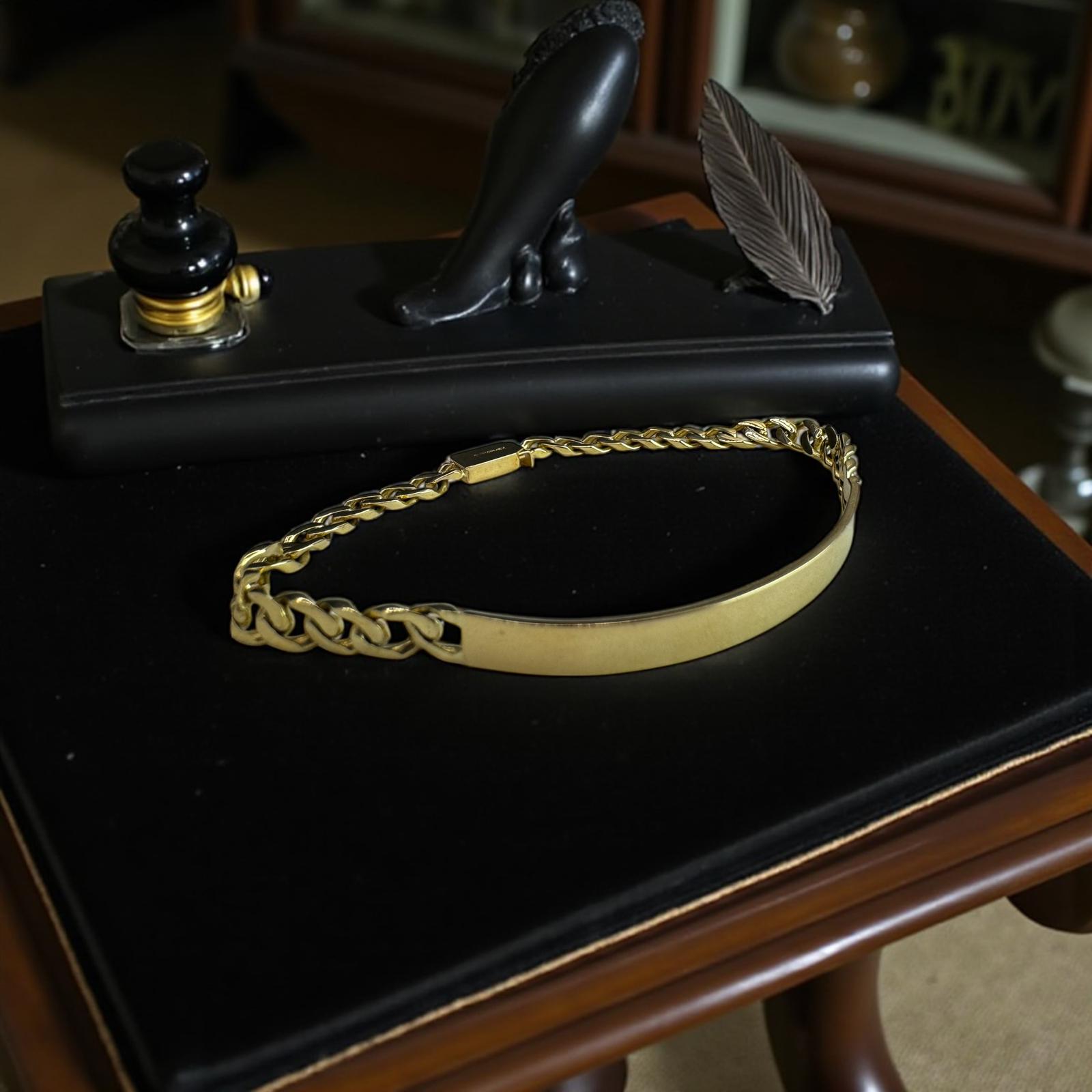 Su diseño robusto ofrece durabilidad para el uso diario, mientras que el oro de alta calidad asegura un brillo duradero y sofisticado. Ideal para quienes buscan un accesorio masculino que refleje distinción y estilo sin sacrificar comodidad.