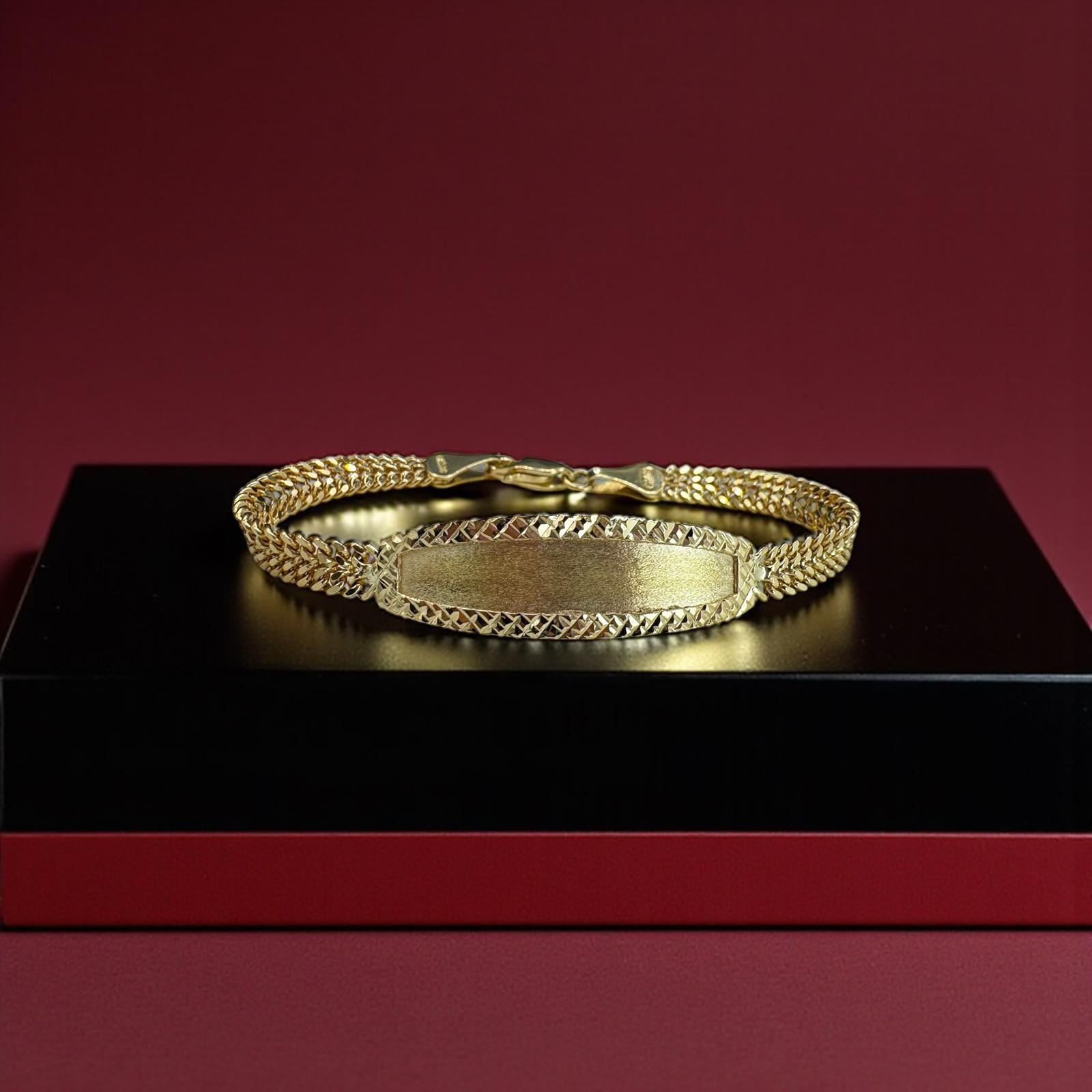 Esta elegante esclava ovalada para dama, fabricada en oro mexicano de 10 quilates, combina diseño sofisticado con la calidad y durabilidad del oro auténtico.